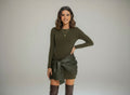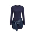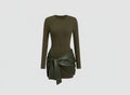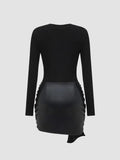 Narelle | Fitted Mini-Jurk met Vegan Leather Drape Detail